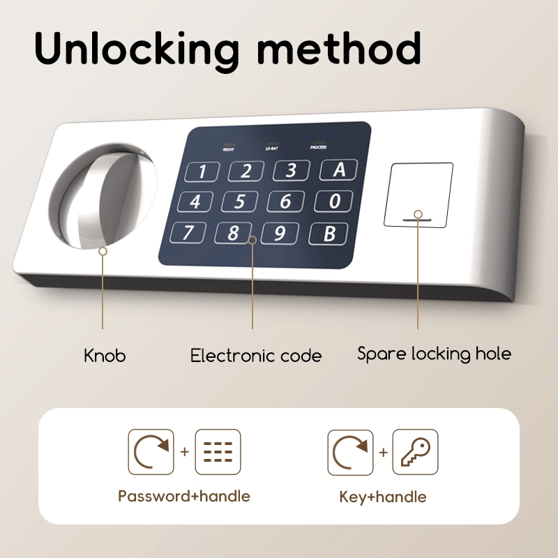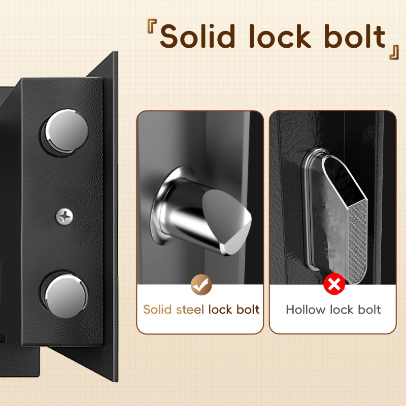 מבנה מתכת חזק: הכספת עשויה ממתכת איכותית, עם עובי דלת של 3 מ"מ וגוף בעובי 1.2 מ"מ, המבטיחים עמידות ובטיחות מירבית.