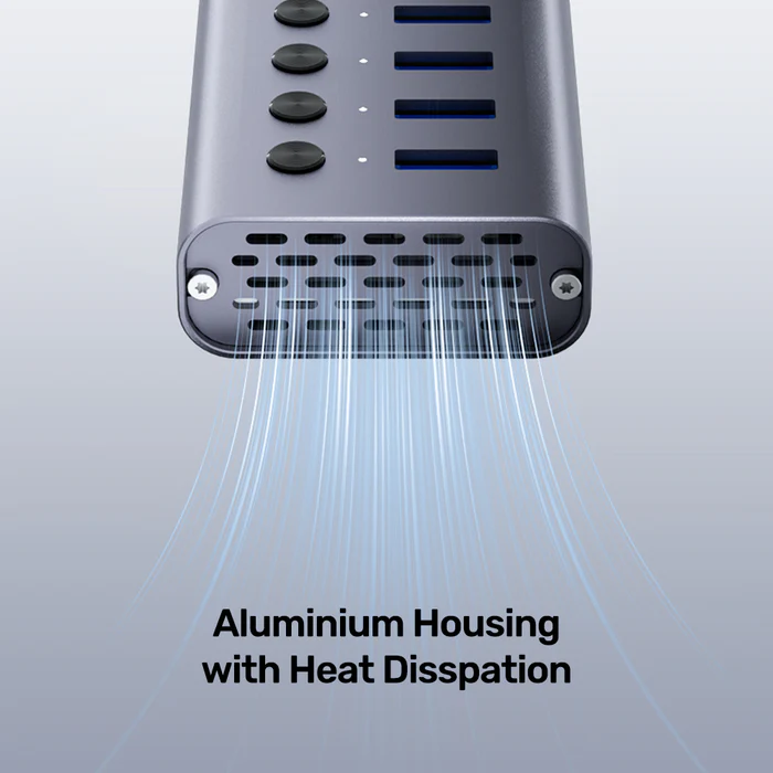 מפצל USB UNITEK H1314A מציע פתרון חכם ונוח עם 7 יציאות USB הכוללות כפתור הפעלה וכיבוי נפרד לכל חיבור, לניהול מסודר, יעיל ובטוח של כל ההתקנים.
