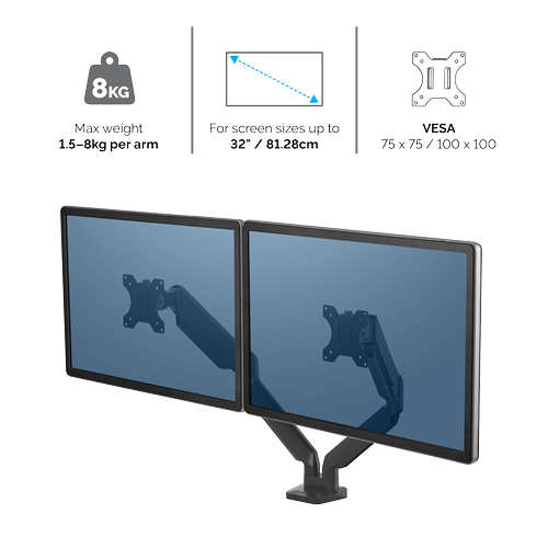 מתקן מסך Fellowes / זרוע למסך מחשב / מתקן תלייה למסך / זרוע ארגונומית / מעמד למסך לבן / ציוד משרדי / שדרוג עמדת עבודה / Fellowes Platinum