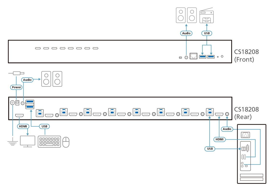 ATEN / CS18208 / HDMI KVM / USB 3.0 / מתג מיתוג / 8 יציאות / 4K / Audio / KVM Switch / שליטה מרחוק / ציוד תקשורת