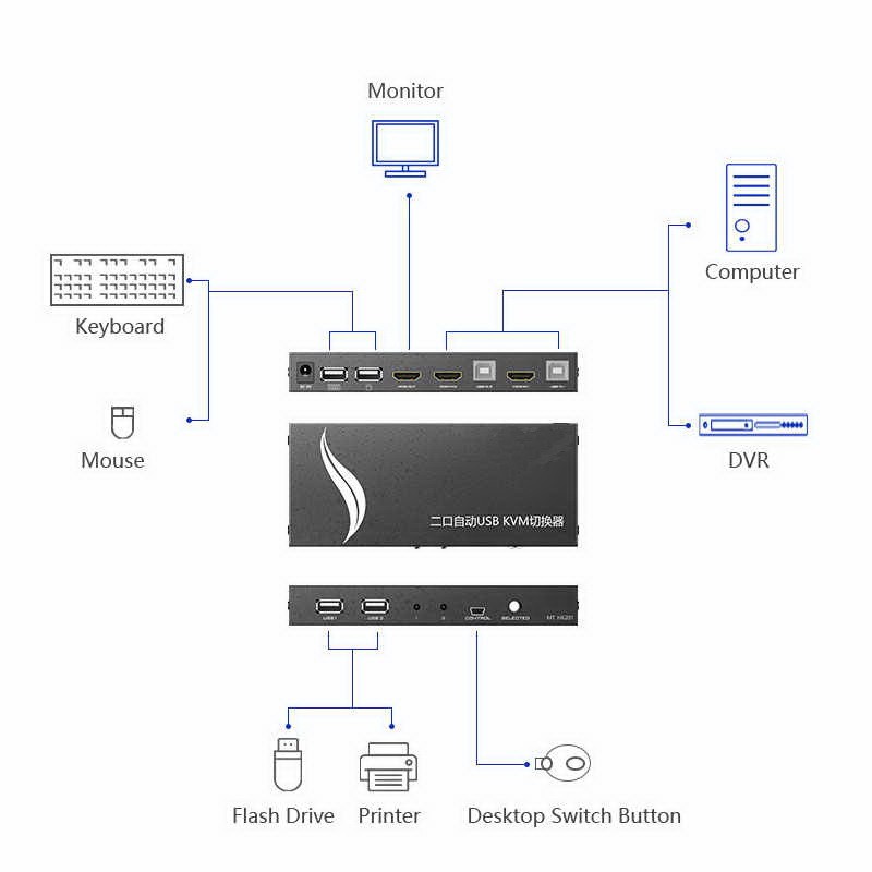 KVM 2 מחשבים / מתג KVM / HDMI 4K / KVM Switch / שליטה מרחוק / ציוד מחשוב / תמליל